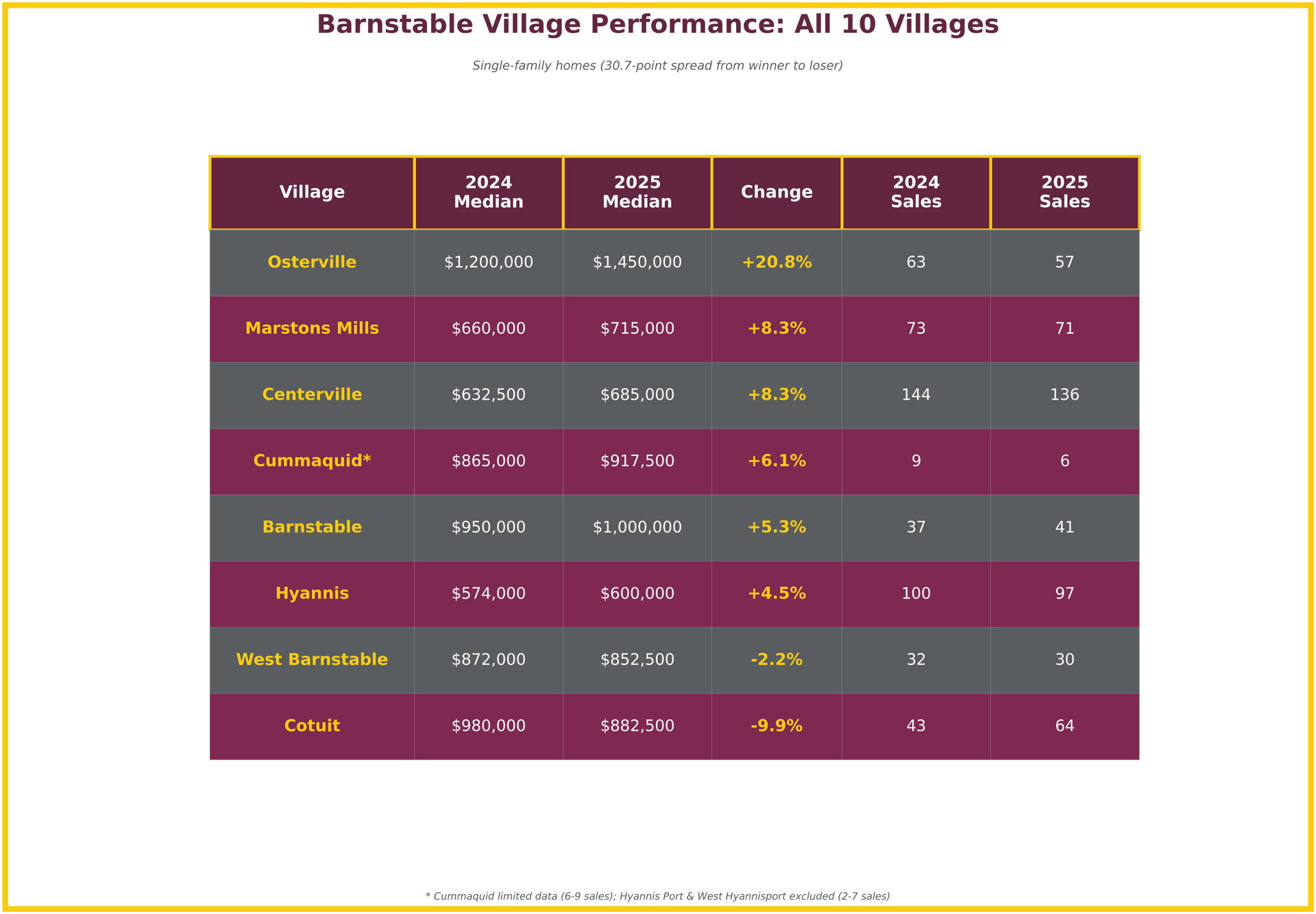 Analyzing single-family home performance across all 10 Barnstable villages, Deborah Camuso identified clear winners, solid performers, and villages where buyers overpaid and sellers are now stuck. Here's what happened—and what it means for your 2026 decisions.
