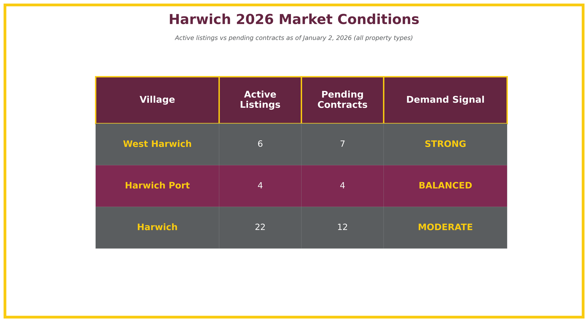 Harwich 2026 Market Conditions - Active vs Pending by Village As of January 8, 2026