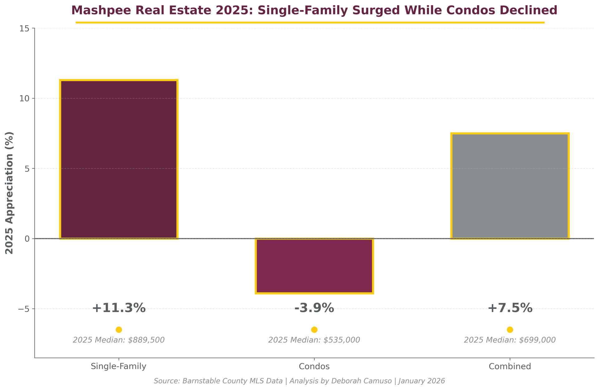Planning to buy in Mashpee this year? Here's what 2025's property type performance means for your strategy:
