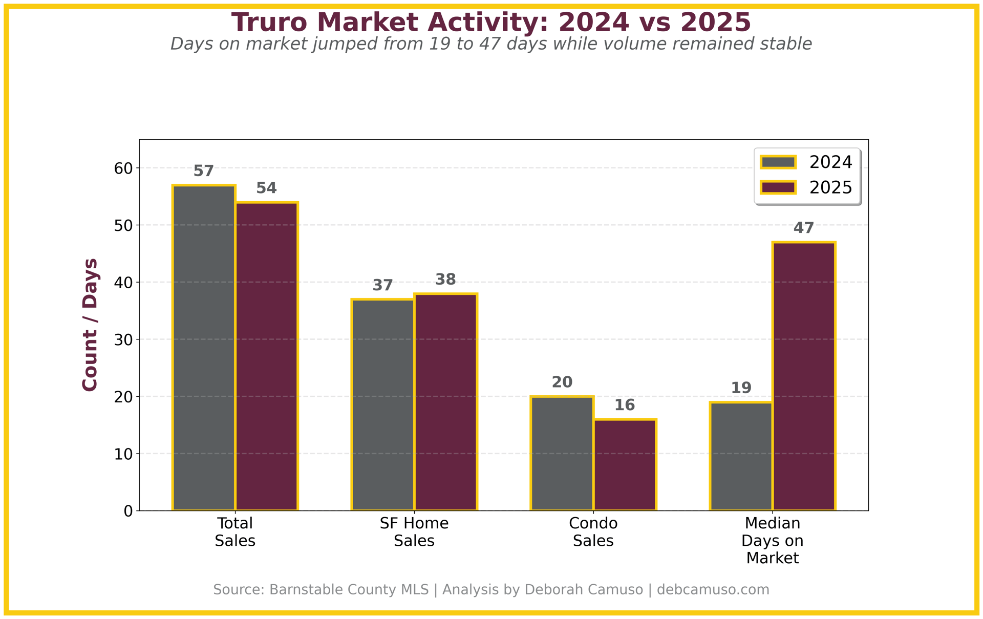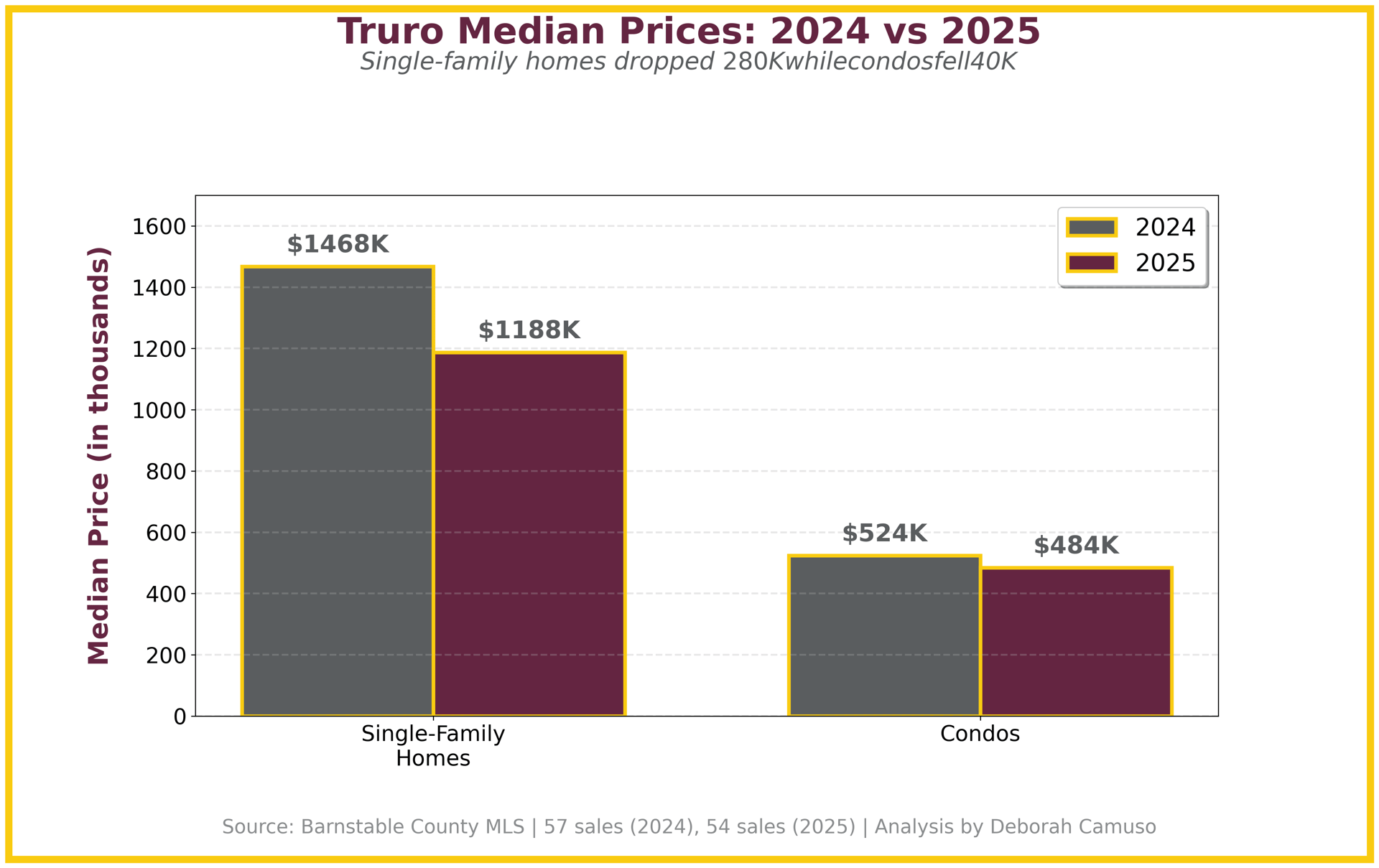 Deborah Camuso's analysis of 111 transactions across 2024-2025 demonstrates that Truro rewards buyers and sellers who understand property type distinctions (single-family versus condo dynamics), respect current pricing reality (not 2024 peaks), and base decisions on comprehensive data rather than wishful thinking or speculation.