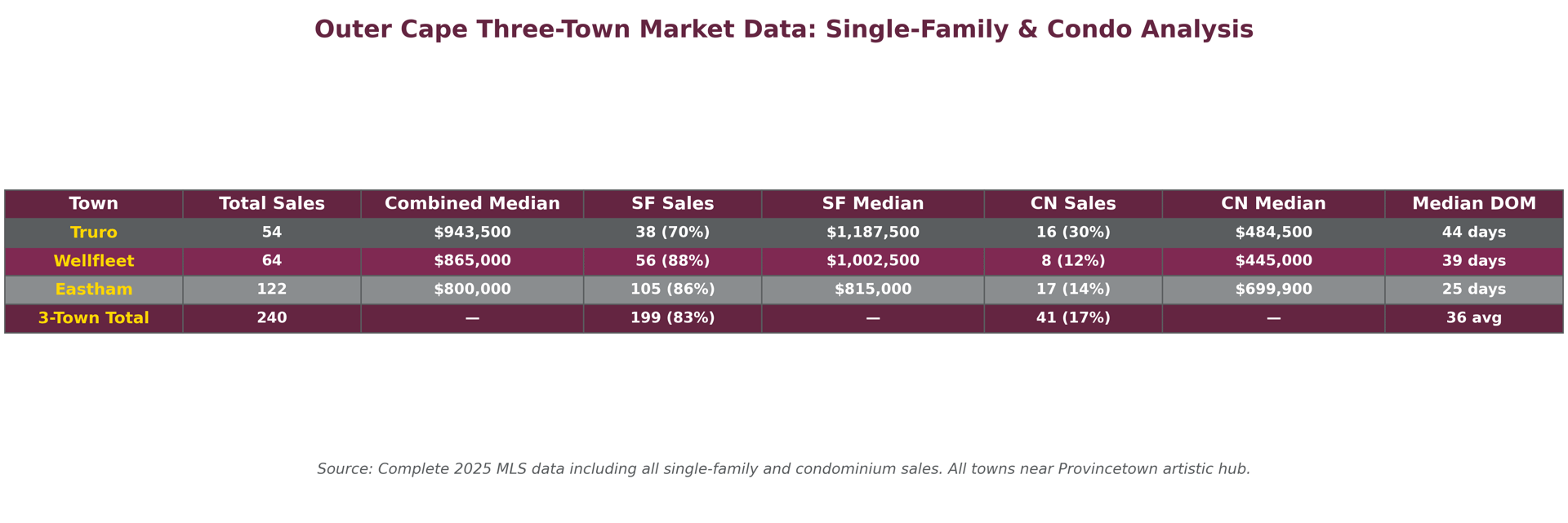 QUICK DATA: Outer Cape 3-Town Single-Family & Condo Analysis 2025