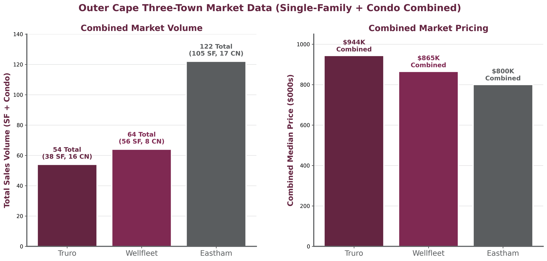 Analyzing complete 2025 Outer Cape single-family and condominium market data to guide 2026 tier decisions: 240 combined single-family and condo sales across Truro, Wellfleet, and Eastham reveal three distinct pricing tiers with Truro establishing highest-price territory at $943,500 combined median through 54 total sales (38 SF, 16 CN), Wellfleet commanding middle pricing at $865,000 combined median with 64 total sales (56 SF, 8 CN), and Eastham delivering lowest pricing at $800,000 combined median with explosive 122-sale volume (105 SF, 17 CN) that doubles competitors, creating Cape Cod's clearest three-tier pricing hierarchy where buyers choose price level and volume preferences rather than simply comparing towns. All three towns benefit from proximity to Provincetown, the Outer Cape's renowned artistic hub.