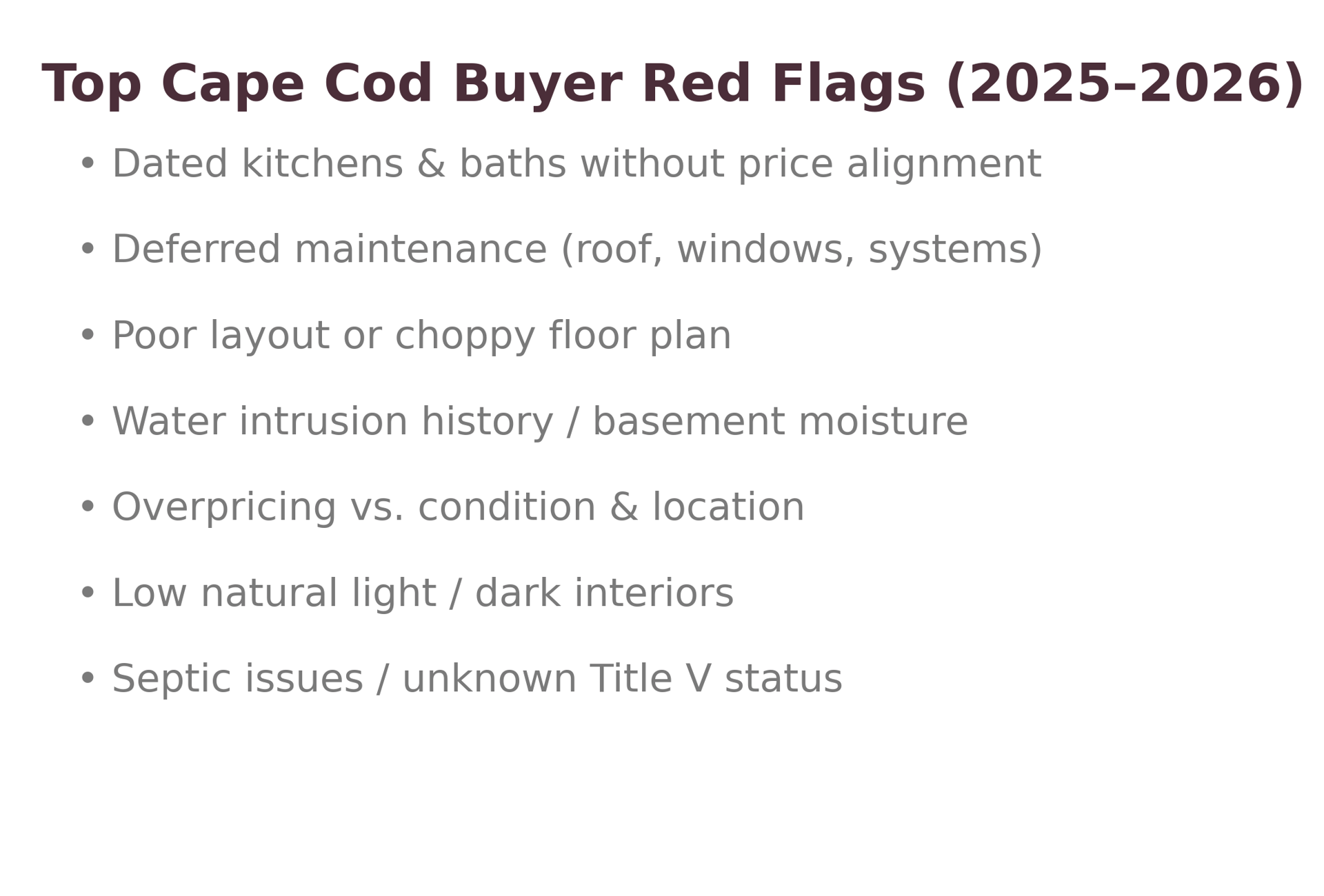 I’ll walk you through what’s normal for Cape Cod homes, what’s negotiable, and what should be a dealbreaker.
